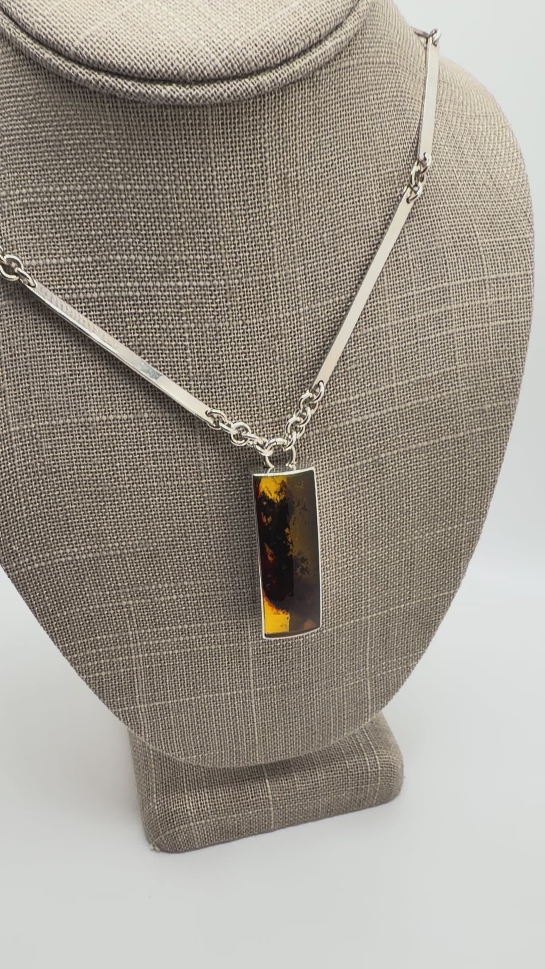 - Pendant centerpiece: natural honey Baltic amber inlaid rectangle
