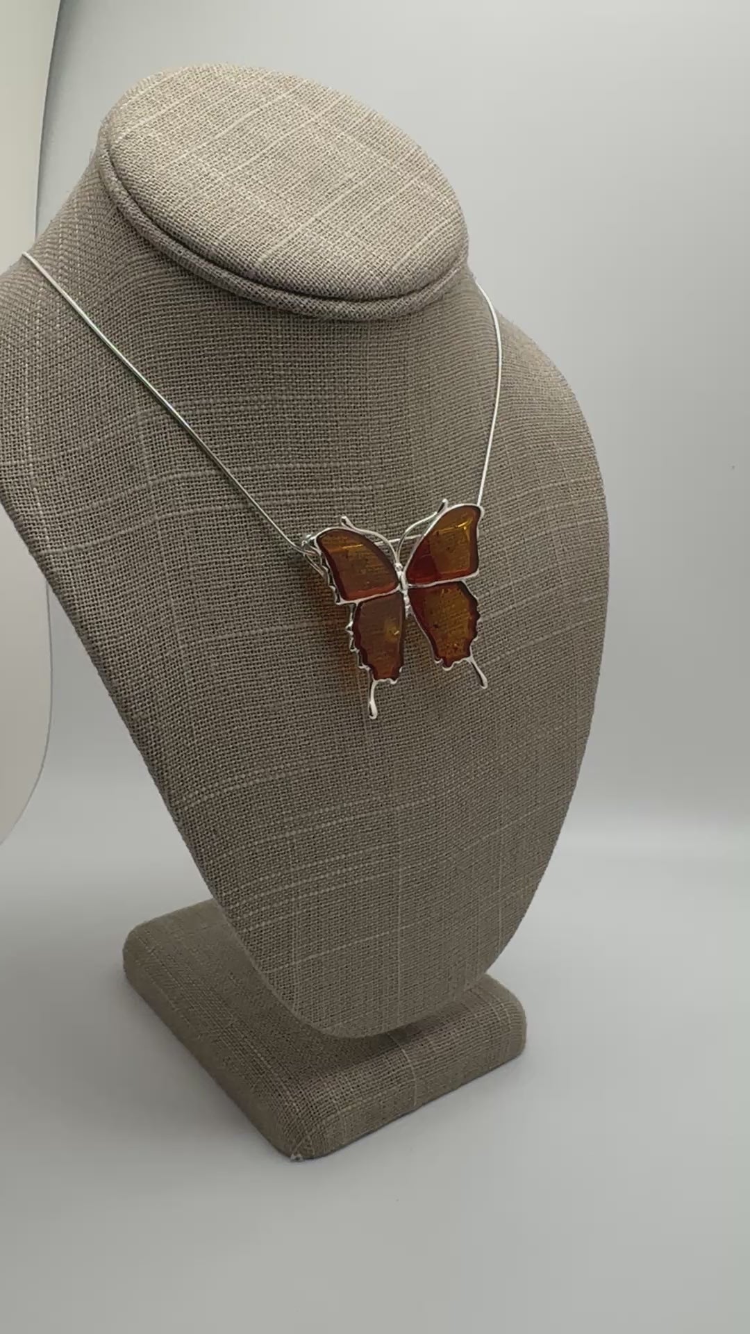 - Genuine honey color Baltic Amber stones, perfectly hand cut into the butterfly’s intricate wing pattern