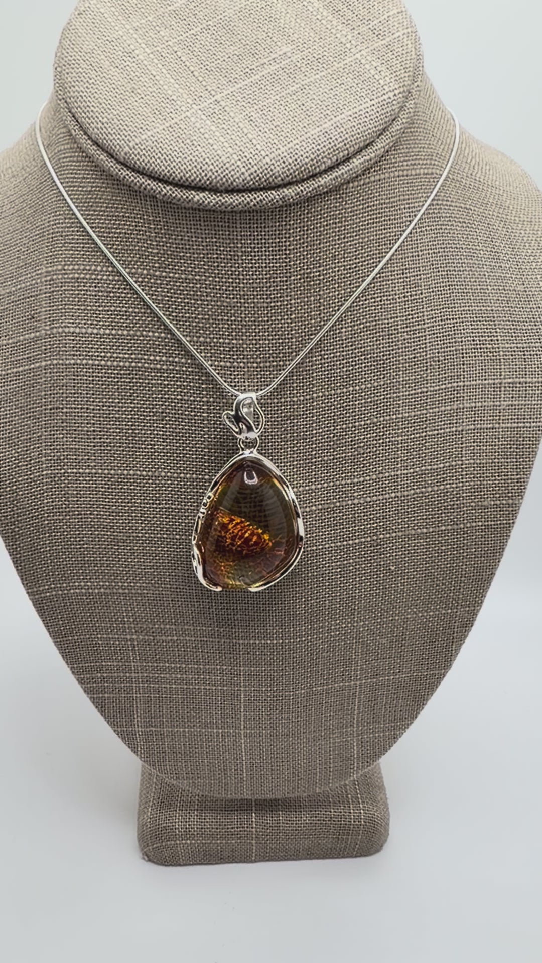 Each pendant showcases a beautifully clear golden-yellow tone, revealing mesmerizing inclusions inside—tiny natural insects or plant material formed over millions of years. No two pendants are ever alike, making each piece a true collector’s treasure.