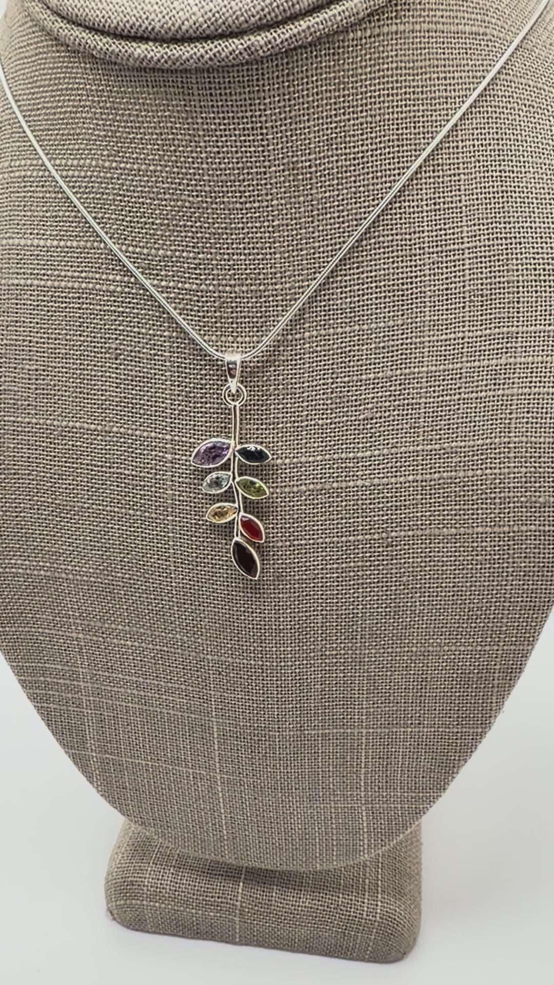 Multi-Stone Leaf Pendant Necklace – Sterling Silver with Amethyst, Blue Topaz, Peridot, Aquamarine & Quartz – Elegant Nature Inspired Jewelry